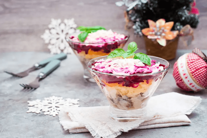Рецептура характеризуется средним гликемическим индексом. Гликемический индекс выше, потому что в рецепте используется отварной картофель и свекла. Кроме того, рецепт высококалорийный. Он также содержит большое количество углеводов. Благодаря селедке в рецепте найдете жирные кислоты, которые очень хорошо влияют на здоровье.