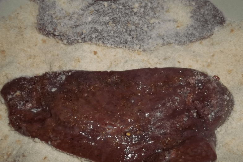 Приправьте каждый кусок печени с обеих сторон солью, перцем и приправой.